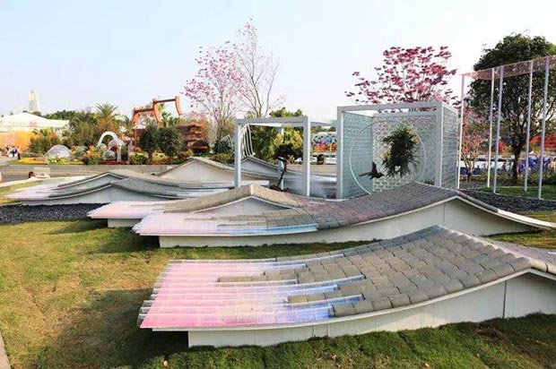 据介绍,《增江·月》设计以光影为特色,营造梦幻诗意的景观空间,用独具现代感的景观体验诠释传统造园的步移景异。同时,引入新型材料和新工艺,通过玻璃砖和镜面不锈钢的结合,自然光源与人工光源的组合,艺术装置和园林空间的融合,赋予园林以光的生命力,游人置身其中,光影交织,如同进入了一个自由变幻、妙趣横生且有质感的美学空间。