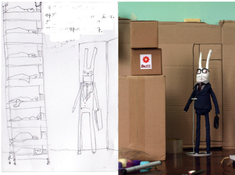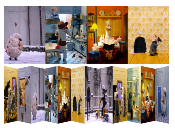 《昨天晚上》全书都是可折叠的屏风结构,像是一部丑萌可爱的布偶剧。屏风形式直观地展示邻里关系。全部拉开后,各楼层的邻居都成为了主角,读者可以清楚地看到,在短短的时间内,动物们的房间里发生了什么。