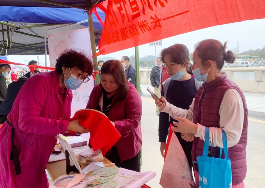 活动通过现场宣讲、有奖问答、派发单张、义卖等形式宣传妇女权益保护等法律法规知识。本次活动,长洲街道妇联执委、党员头雁工作室负责人凌燕金响应长洲街道妇联的号召积极参加,作为一名退休老党员,凌燕金充分发挥“头雁”引领作用,退休后自律学习和传承深井原花社手工文化,积极传播长洲本土文化。活动现场,她不仅帮忙派发宣传单张,还教授居民刺绣知识。