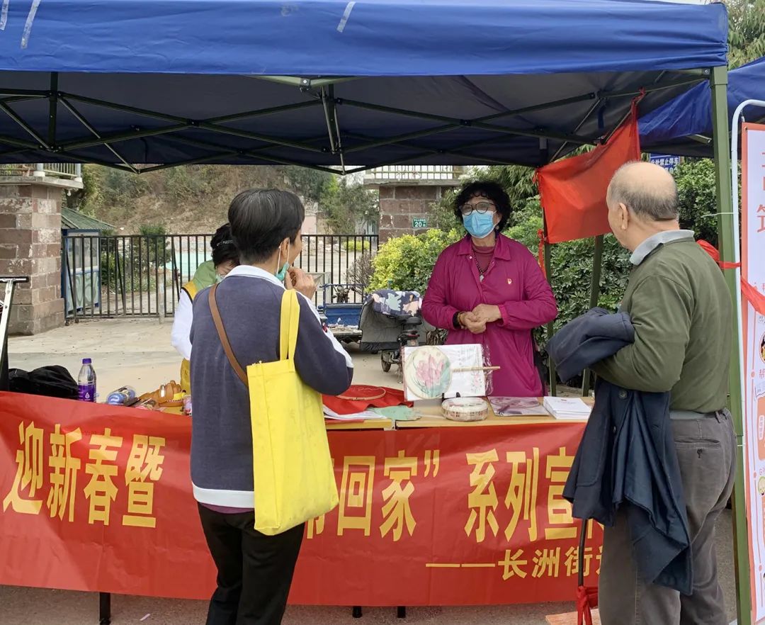 2021年春节,受疫情影响,不少街坊响应“就地过年,留穗过年”。长洲街在中山公园前路开设了2021年迎春临时摆卖点,借此机会,长洲街道妇联以“花城有爱,在穗过年”为主题,开展“迎新春暨把爱带回家”系列宣传活动。