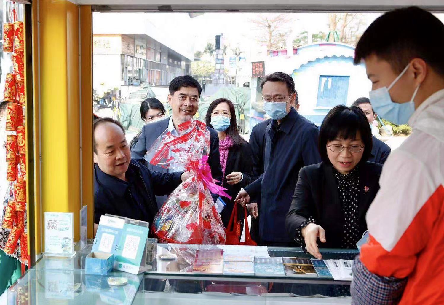 正月初八,广东省体育局党组书记、局长王禹平,广州市体育局党组书记、局长欧阳资文,白云区副区长刘国华,与省、市体育局和体彩中心相关领导,到白云区体育彩票销售网点、区体育行政部门和体彩中心慰问调研,感谢基层一线人员在过去不平凡的一年中为公益体彩事业的辛勤付出,并鼓励他们继续坚守初心、不懈奋斗,统筹做好疫情防控和体彩工作,为“十四五”期间进一步扩大体彩公益金筹集规模,更好地建设健康中国、体育强国开好局、起好步。