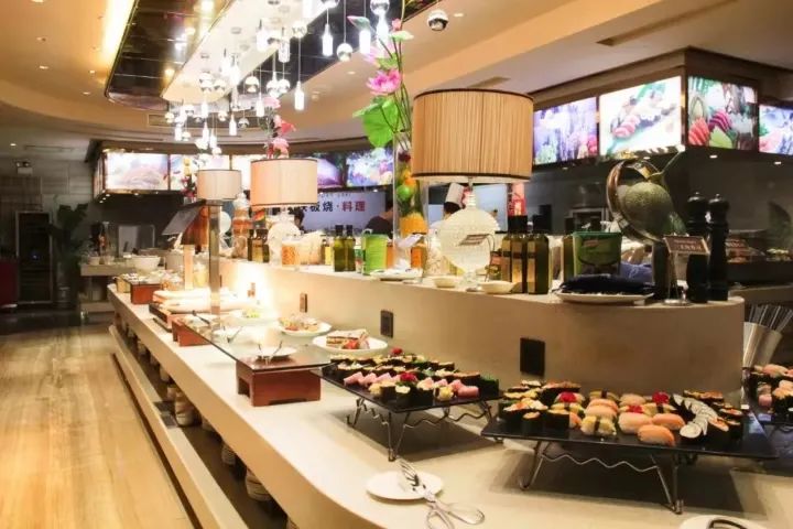 自助餐品类繁多的美食。