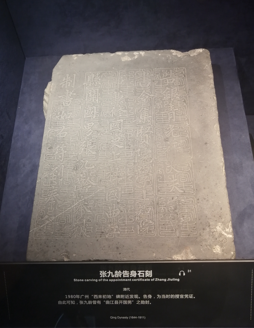 广州博物馆“城标·城史——广州历史陈列”展中,有不少珍贵的展品。其中唐宋单元增加馆藏唐张九龄画像碑拓本一纸和张九龄告身刻帖一方。这两种有关广东名贤张九龄的文物久藏仓库,极少展现。它们究竟价值几何?广州博物馆副研究馆员陈鸿钧向记者详解了与之有关的故事。