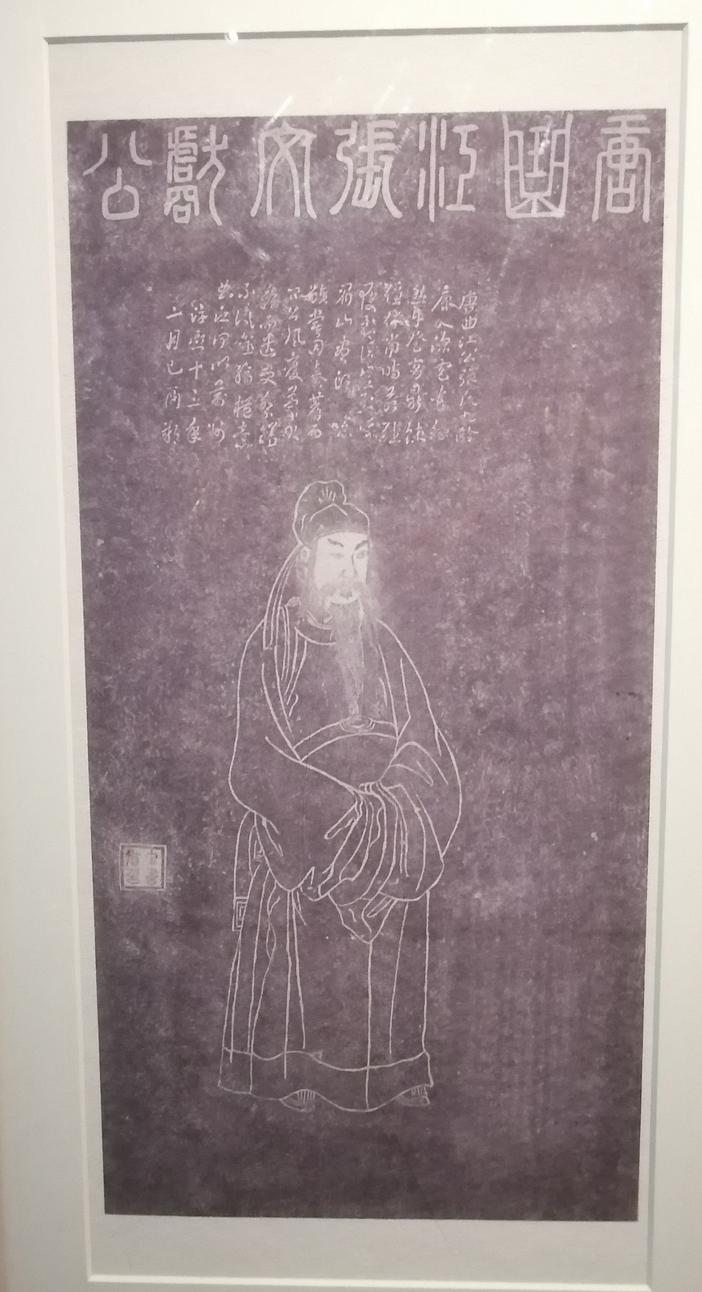 在画像拓本旁展出的张九龄告身帖,长33厘米,纵26厘米,黑石,石质坚致,石面平滑,楷书5行共46字,文曰:“告银青光禄大夫、守中书令、集贤院学士知院事、兼修国史、上柱国、曲江县开国男张九龄奉被制书如右,符到奉行。”