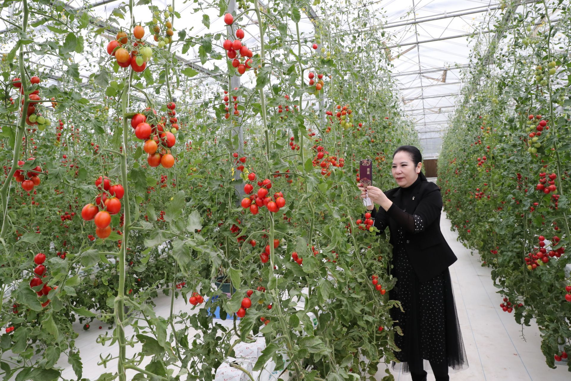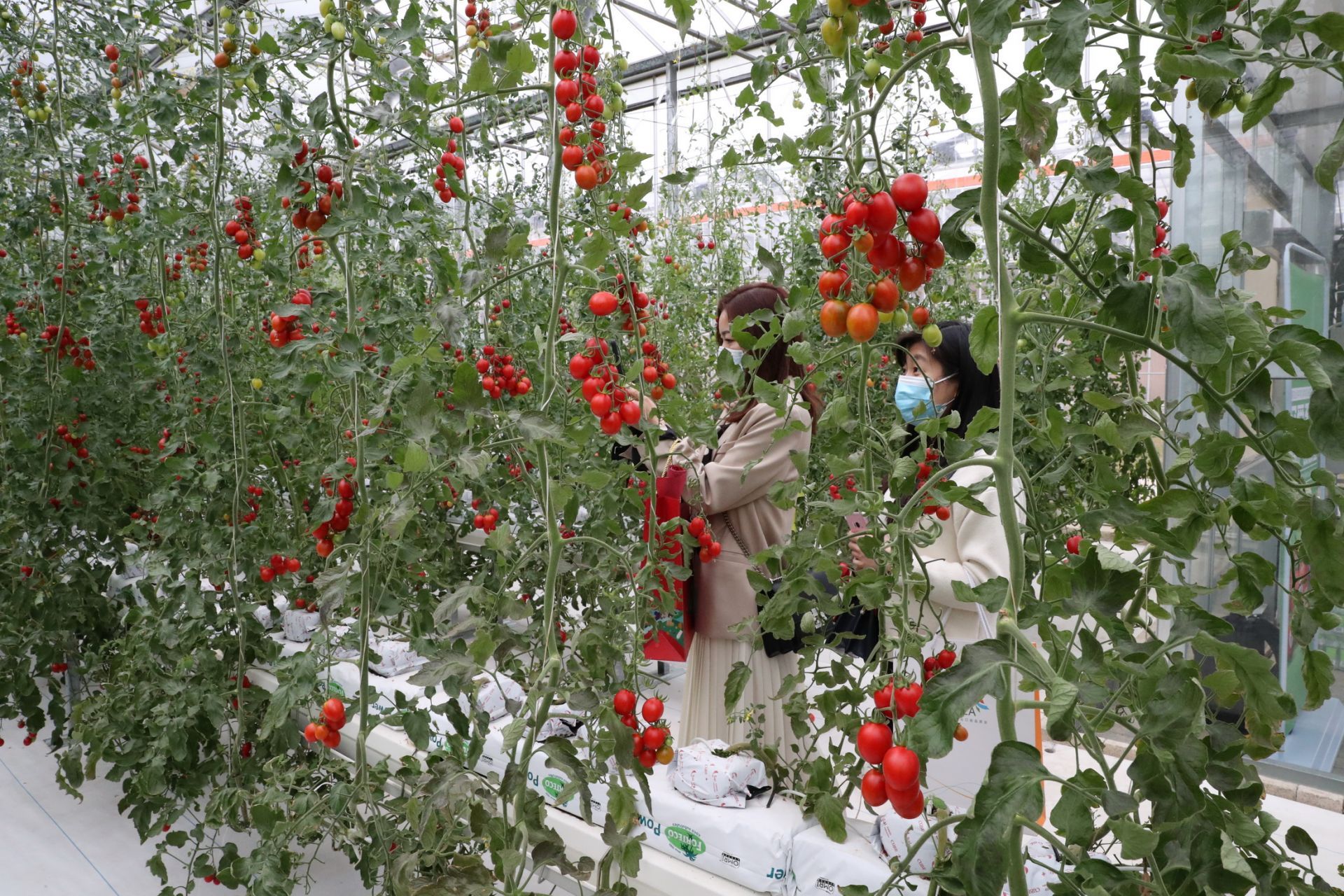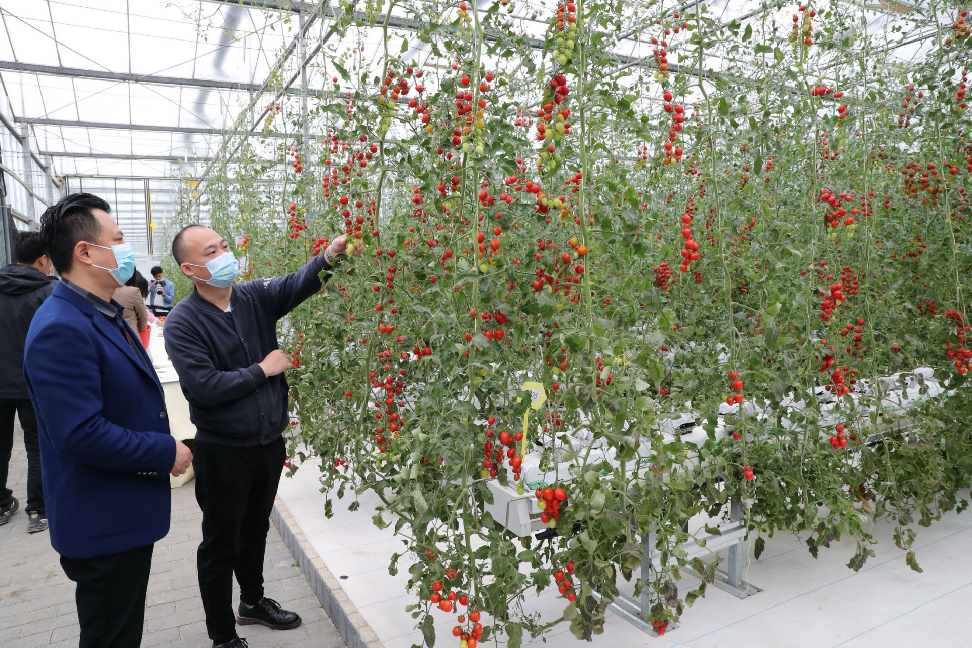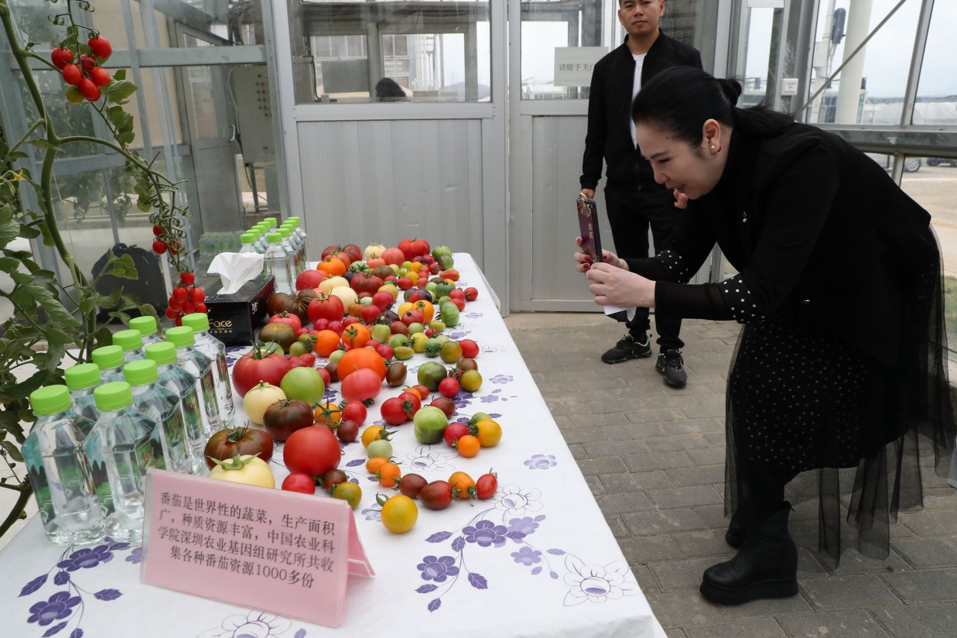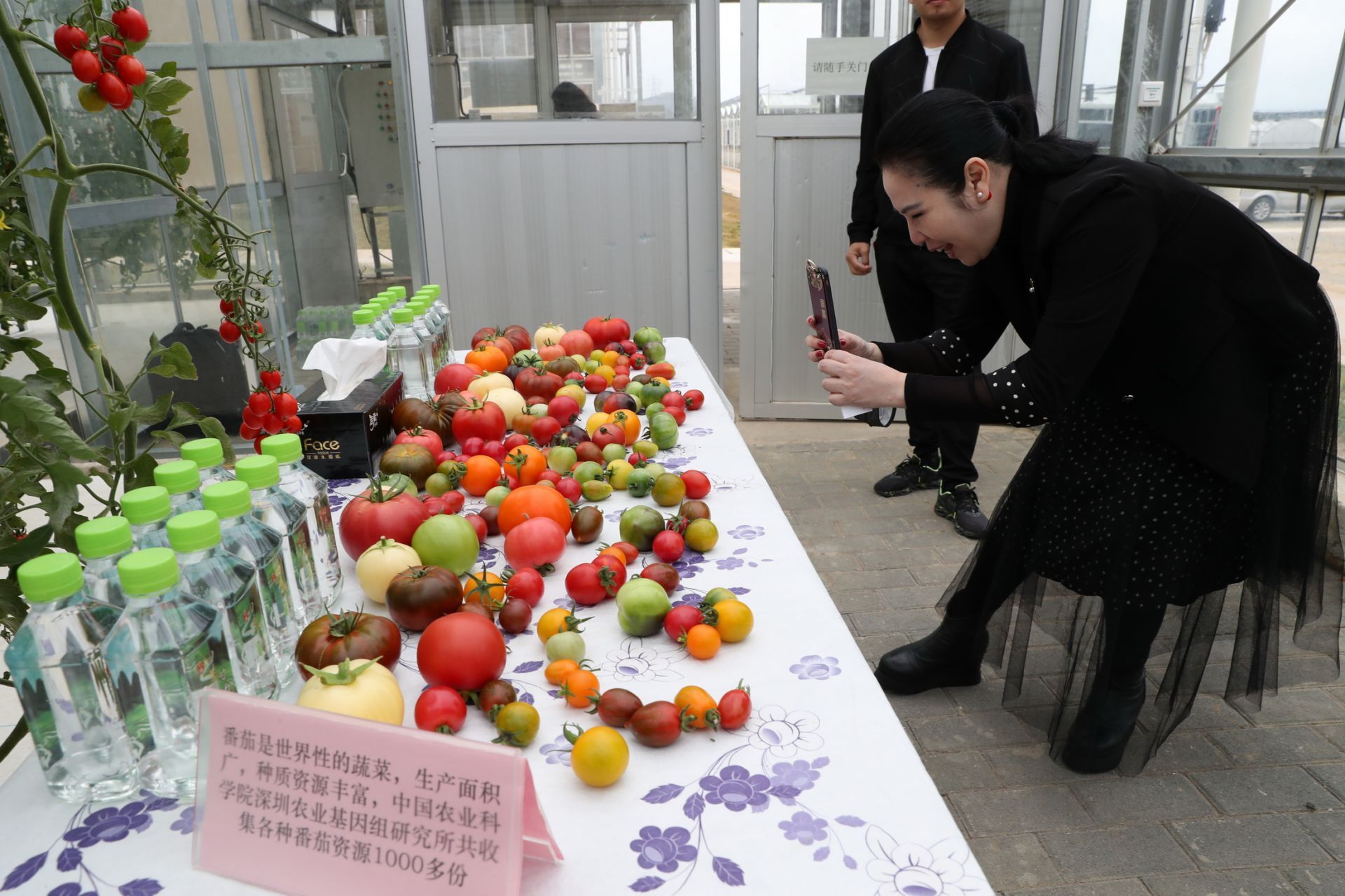 图为基因组所农场番茄大棚,品鉴“深爱”系列番茄。