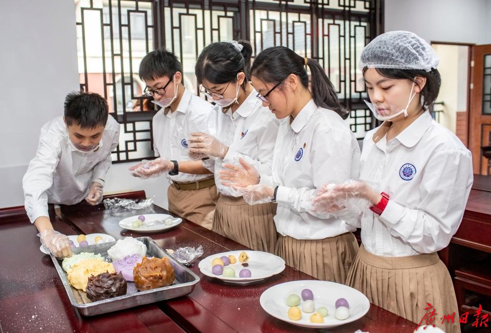 高一(11)班的黎美琳告诉记者,自己非常喜欢历史课和思政课,通过这两门课,她对“国家”二字有了更深刻的认识。高二年级港澳子弟班的的历史文化课上,老师向同学们讲授元宵节的起源和习俗。在课堂后半段,师生一起热热闹闹地包汤圆,感受节日的喜庆气氛。