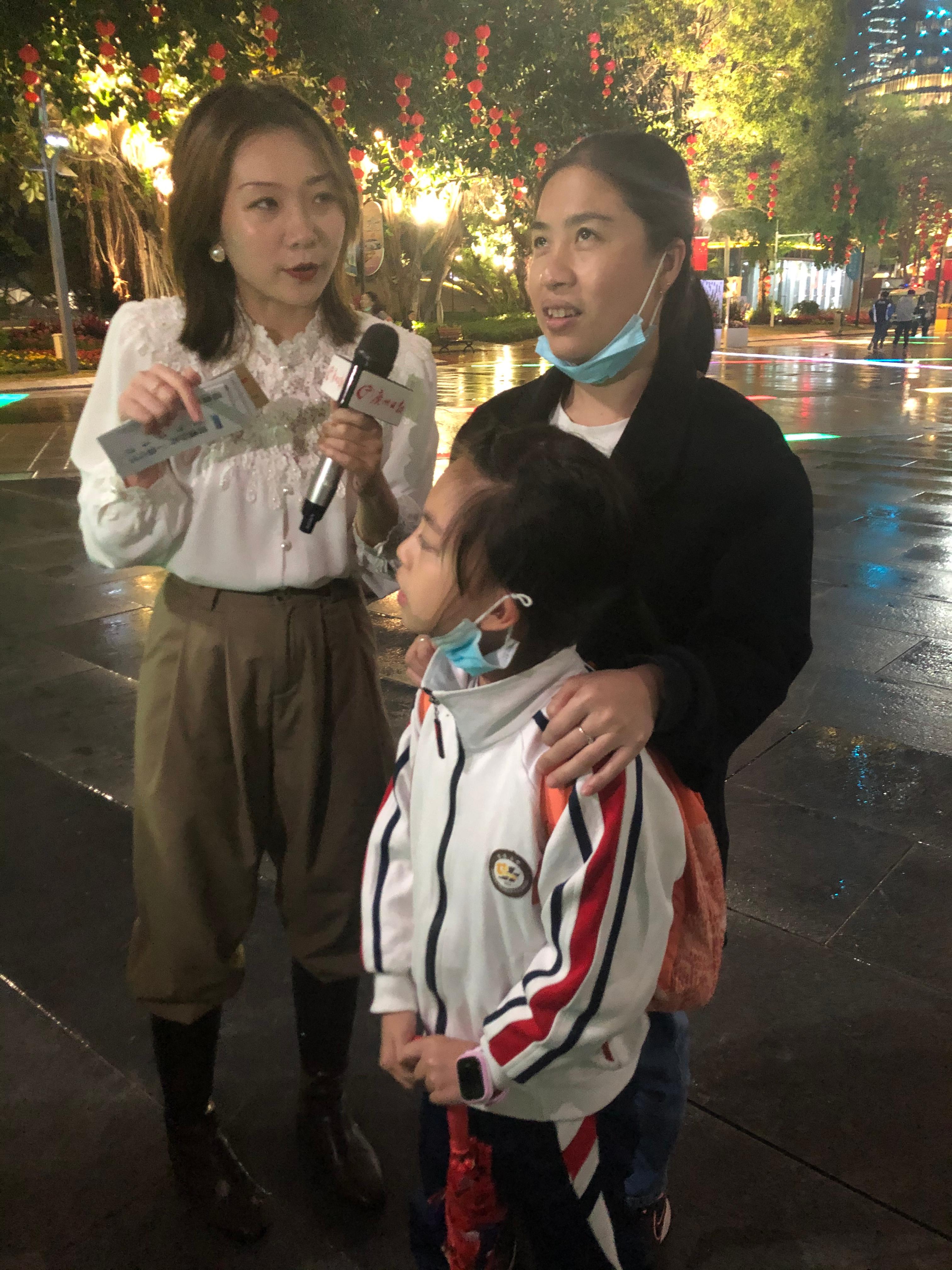 38岁的胡先生老家在汕头,已经在广州学习、工作20年了,广州成为他的第二故乡。元宵节当晚,他和妻子带着两个孩子特意从白云区来到花城广场。在妻子的鼓励和陪伴下,胡先生7岁的小女儿参加了广州塔元宵灯谜会,并顺利得到了一张摩天轮的门票。小朋友开心地说:“我要去摩天轮啦。”