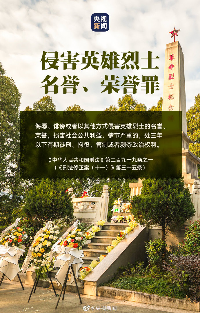 侵害英雄烈士名誉荣誉罪等新罪名确定……