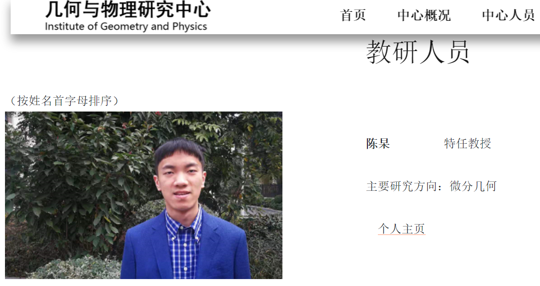 中国科学技术大学几何与物理研究中心页面上的陈杲