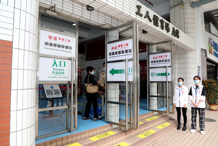 南粤工联核酸检测站位于关闸广场旁澳门工联工人体育场内的展览厅,为澳门本地居民及有出入境需求人士提供核酸检测服务。符合资格人士可透过澳门卫生局指定系统预约前往南粤工联核酸检测站进行采样,样本将统一经专业物流队伍送至南粤·金域医学实验室进行检测。结果将推送至“澳门健康码”,居民可自行查询。目前,该检测站服务时间为每天上午10点至晚上8点。据现场负责人表示,3月1日当天,澳门卫生局初次放号500个名额全部显示预约已满。待预约运作顺畅时,将会开放更多名额。