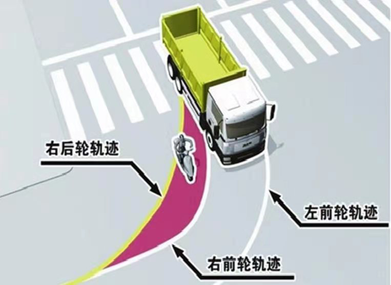 当大货车转弯时就会形成“内轮差”,也就是俗称的“吃人区”。