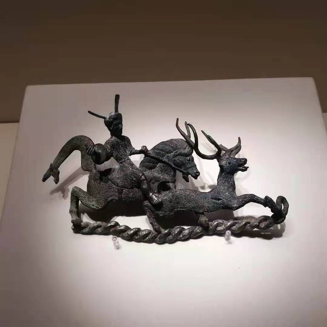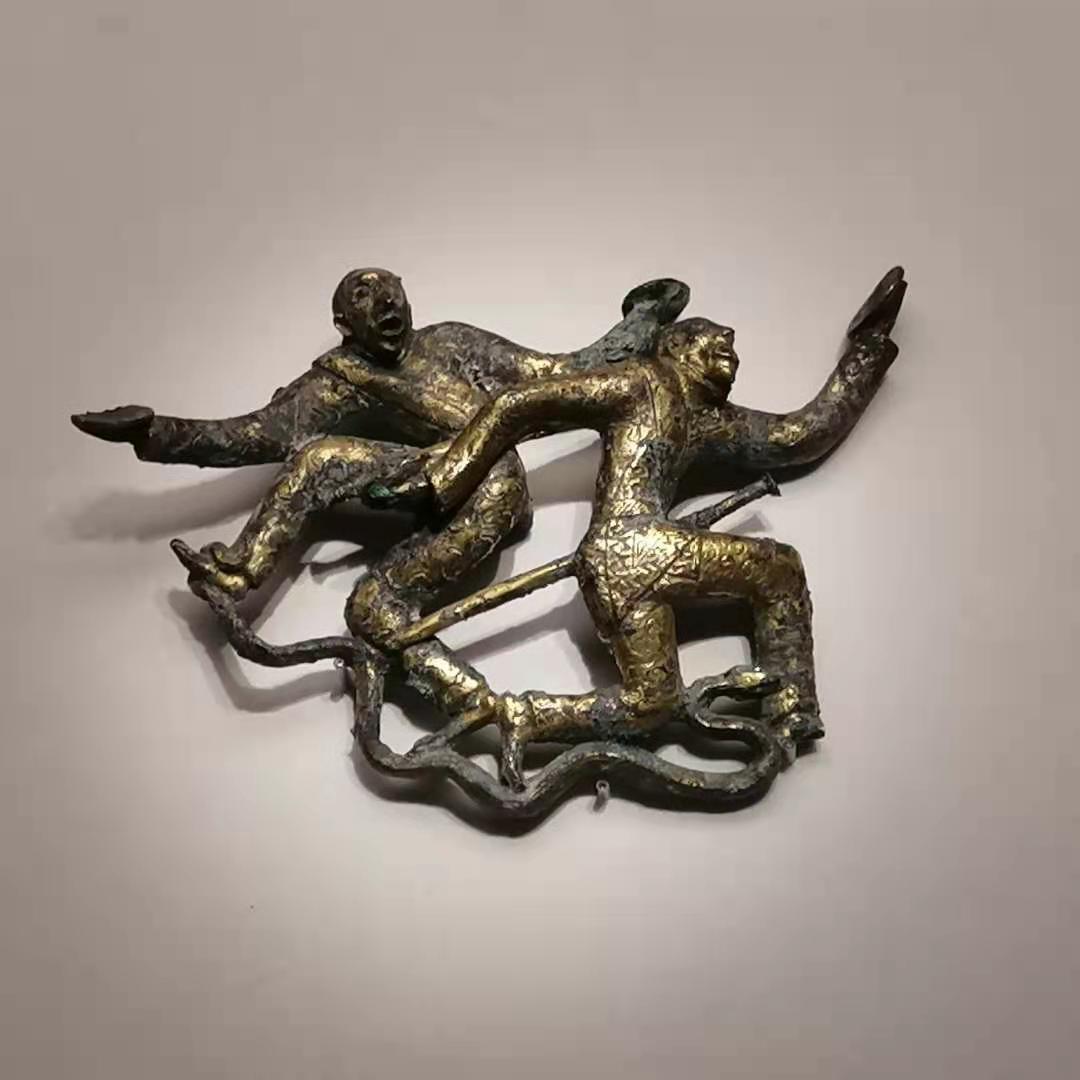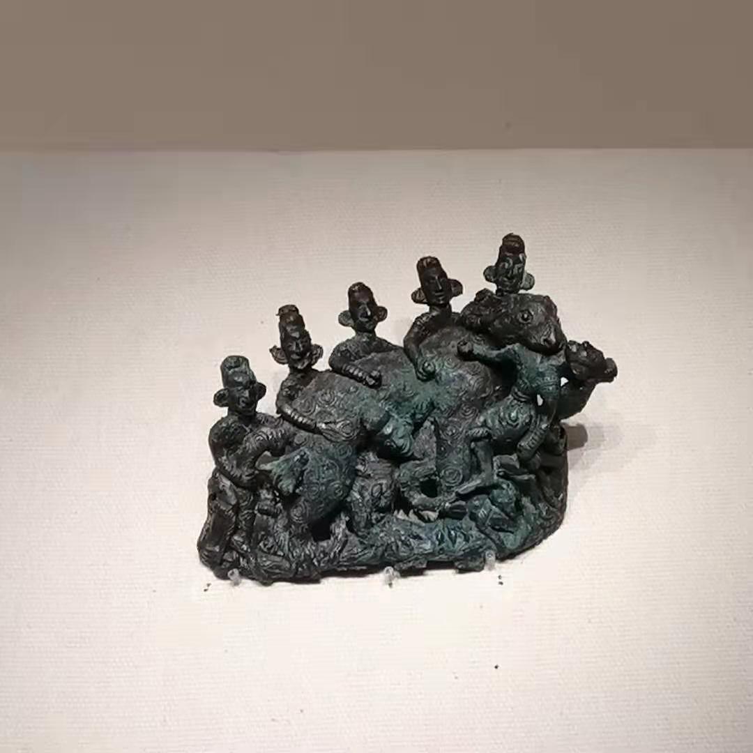 如果您到现场,多半会被那数量繁多的、两千多年前的人物形象所震撼,不仅有单人、两三人的形象,也有规模庞大的群像。无论是在体形巨大的贮贝器上,还是在粗犷豪放的扣饰上,那些造型或写实、或夸张的人物,还是让我们能一瞬间走入一个与今天的城市生活完全不一样的时空,虎啸熊咆,晴岚苍日。