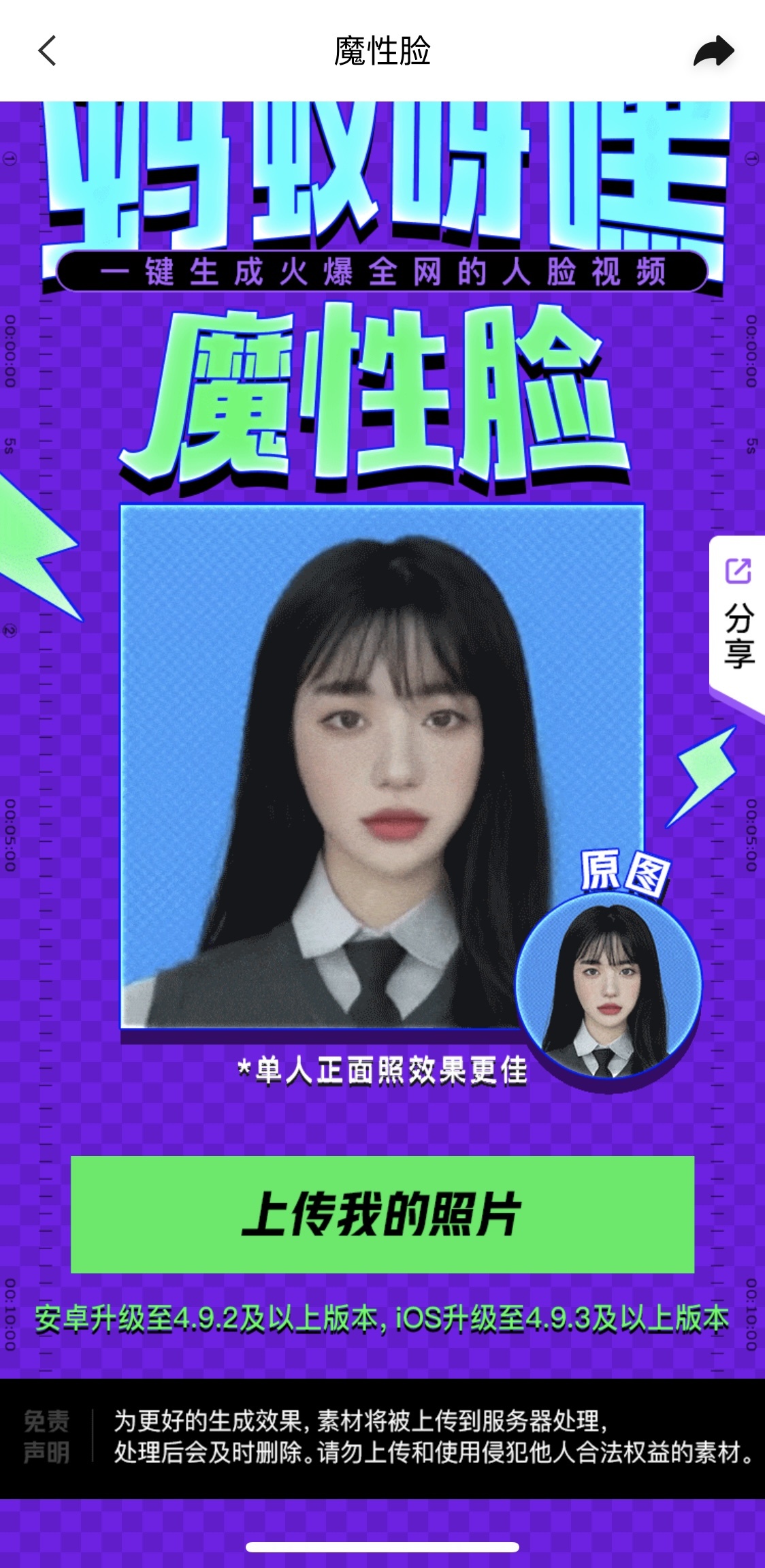 但无论使用什么软件,制作这类视频都需上传自己或他人的照片到网络上,因此它跟曾经红极一时的AI换脸软件“ZAO”一样,存在数据泄漏风险,以及侵犯他人肖像权、隐私权等问题。在某短视频平台上,有人为使用这种特效甚至上传了自己的身份证照片,还拿某些名人照片进行恶搞,某些制作教程使用的也是未经授权的他人照片来演示。
