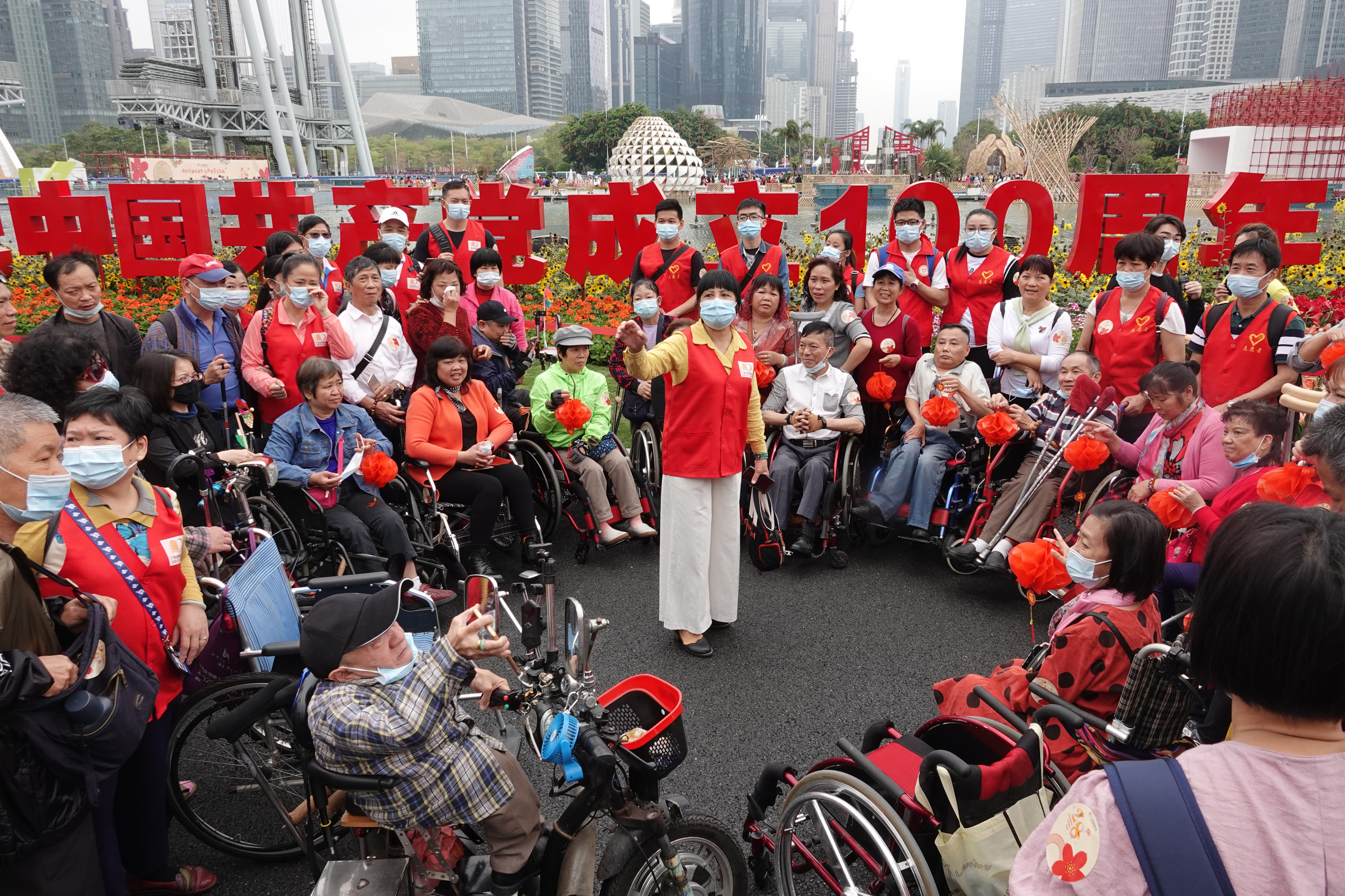 “往年,我们都会组织残障人士‘行花街’,但是今年花街取消了,我们就第一次组织大家来一睹园博会的游览。”据介绍,作为广州“云山珠水,吉祥花城”品牌形象的重头戏,今年的广州园博会以“湾区花开”为主题,面积达到10万平方米,是一场融合城市记忆、地域文化、人文特色以及园林景观元素的观感盛宴。广青启智服务总队携手广州市阳光肢残人互助会、广州市盲人协会、广州益力多乳品有限公司,共同举办“花城看花,听见花开”活动,旨在与残障人士一同度过节日快乐的一天,为大家带来春节的气氛和感受。此次活动,还有粤听APP的独家直播。