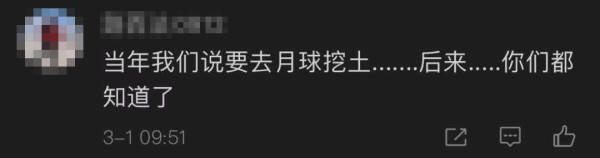 “当年我们说要去月球挖土……后来……你们都知道了。”