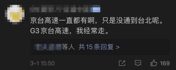 这位网友介绍,G3京台高速一直都有,只是目前暂时没通到台北。下面则有留言提出疑问,称“京台高速”中的“台”莫不是指的浙江台州?