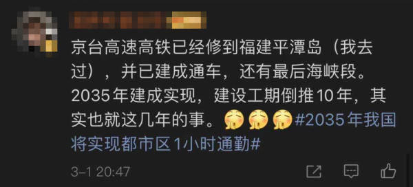 对此,一位已经目睹福平铁路建成通车的网友留言写道:“还有最后海峡段,2035年建成实现,建设工期倒推10年,其实也就这几年的事。”