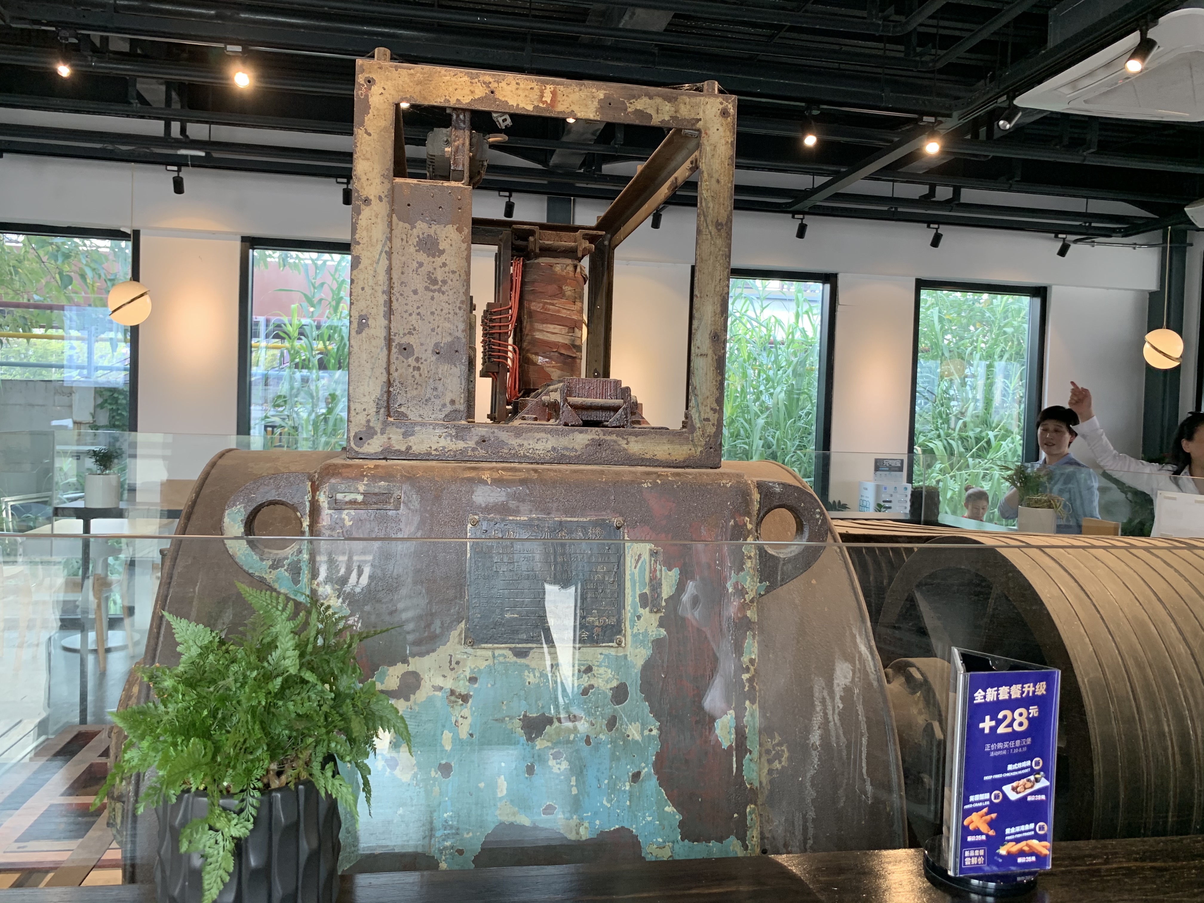杨树浦咖啡厅以前是船厂的发电机房,当年的老式发电机仍然保留在咖啡厅内