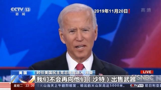 时任美国民主党总统竞选人 拜登:我们不会再向沙特出售武器,我们会让他们付出代价,让他们成为国际社会的弃儿。