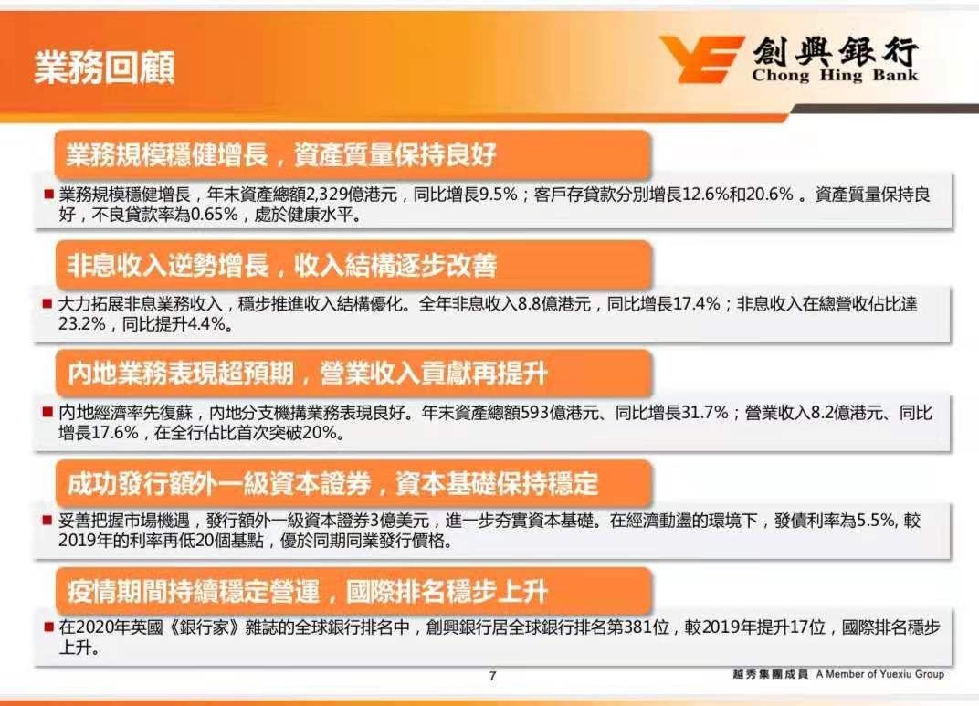 2021年3月4日,创兴银行有限公司(以下简称“创兴银行”,股份代码:01111.HK)发布2020年度业绩报告。