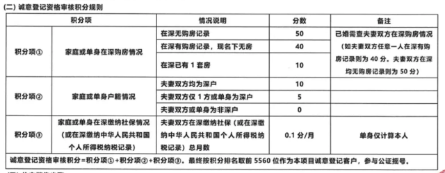 方案显示,购房人需符合深圳市购房条件,具备购买住宅性质住房资格的购买人均可提交资料;同时,开发商会根据意向购买人资料的资料,审核计算其名下房产、户籍、在深社保/个人所得税、未成年子女情况,并根据积分由高至低排序,按推售房源数量3倍确定入围者,最后参与公证摇号选房。