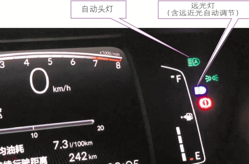 需要说明,有“自动大灯”,不一定就有“远近光灯自动切换”。当系统监测到周围环境光线过暗,“自动大灯”会自动点亮;反之,会自动熄灭。“远近光灯自动切换”则是指,在光线不足的路面行驶时,遇到会车,车大灯会自动从远光灯切换成近光灯。这两个功能对于夜间行车大有裨益。这次,我们主要测试“远近光灯自动切换”。