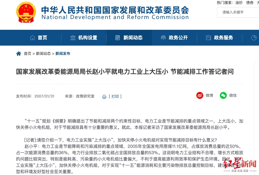 由于我国电力工业中能耗高、污染重的小火电机组比重偏大,因此,国家发改委早在2007年就将电力工业实施“上大压小”、关停小火电机组作为节能降耗工作的重要举措。