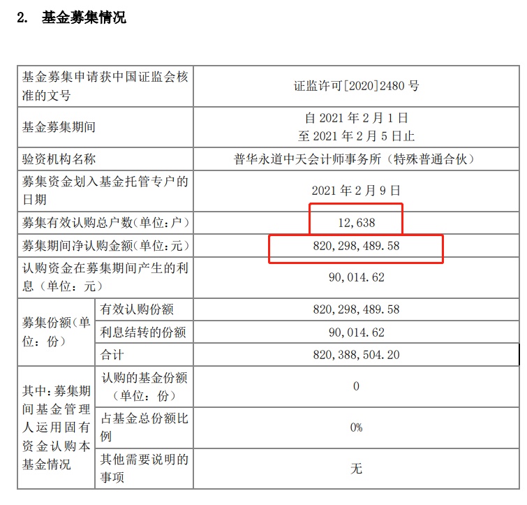 借助招行强大的渠道,最终募集规模8.2亿元,得到12638户投资者认购。成绩还是相当不错的。