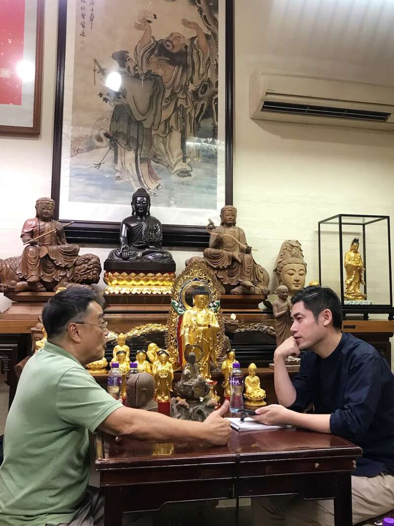 图:葛亮 采访澳门木雕佛像非遗传承人。