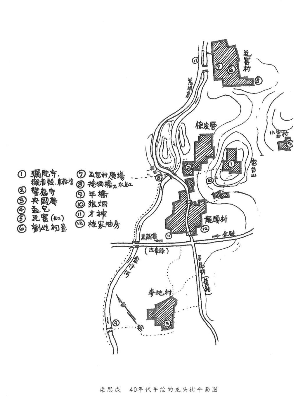 图: 梁思成 1940年代手绘龙泉镇龙头街平面图