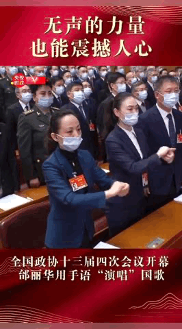 3月4日下午,全国政协十三届四次会议开幕会上,全国政协委员、中国残疾人艺术团团长邰丽华和她的助理“演唱”了手语版国歌。这一幕经媒体报道后迅速登上微博热搜,不少网友感慨“无声版的国歌同样令人振奋”。