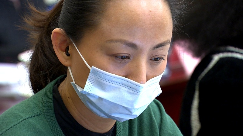 △戴着助听器的邰丽华委员