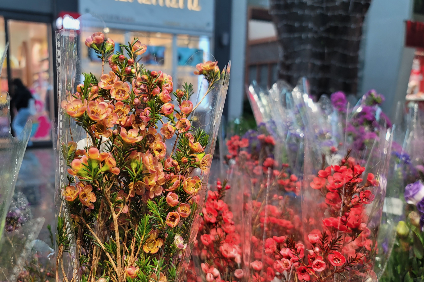 走进步行街花档,暖意扑面而来,花档内一派生机勃勃的景象,花团锦簇、百花争艳,各种花卉绚彩绽放,玫瑰,百合,洋桔梗,洋牡丹等鲜切花及草花,还有小玫瑰,长寿花,康乃馨,蝴蝶兰等精品小盆栽……各种花卉让人眼花缭乱,花档内不少顾客正在挑选心仪的花卉。