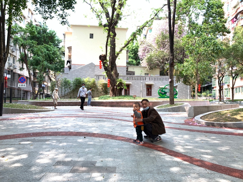 当记者来到社区的街心小公园,看到这里绿树环绕,宫粉紫荆迎风绽放,恍如走进了公园的某个角落里。“我每天都带着小孙子来这里休憩,小孙子喜欢在大树下跑,看到花朵落下,还会捡起来闻闻香气。”居民刘叔说,他是居住在旁边的社区,但最近三眼井社区改造实在太漂亮了,他们一家也被吸引过来,喜欢到这里散步,小孙子也喜欢在这里游玩。