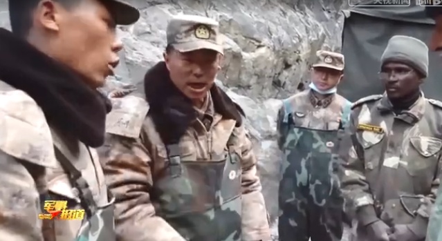 2月19日,央视军事频道首次披露去年中印边境冲突现场画面。“卫国戍边英雄团长”祁发宝右手侧的战士作为翻译,用一口流利的英语和团长祁发宝一同与外军严正交涉。