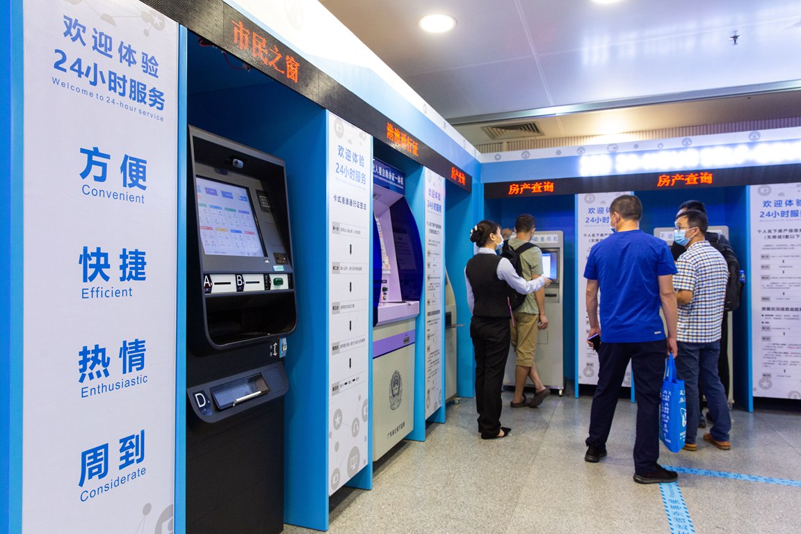 通过省市协同,目前全市各区、镇(街)、村(居)基本实现政务服务自助终端全覆盖,累计已布设3500余台政务服务终端机。其中,近1000台“政务服务一体机”集成多种服务事项,覆盖出入境、交管、人社、民政、卫健、残联、税务等业务类别,可以提供个人名下房产查询、个人完税证明打印、港澳台签注申请、驾驶员和车辆违章查询等近百项业务办理。