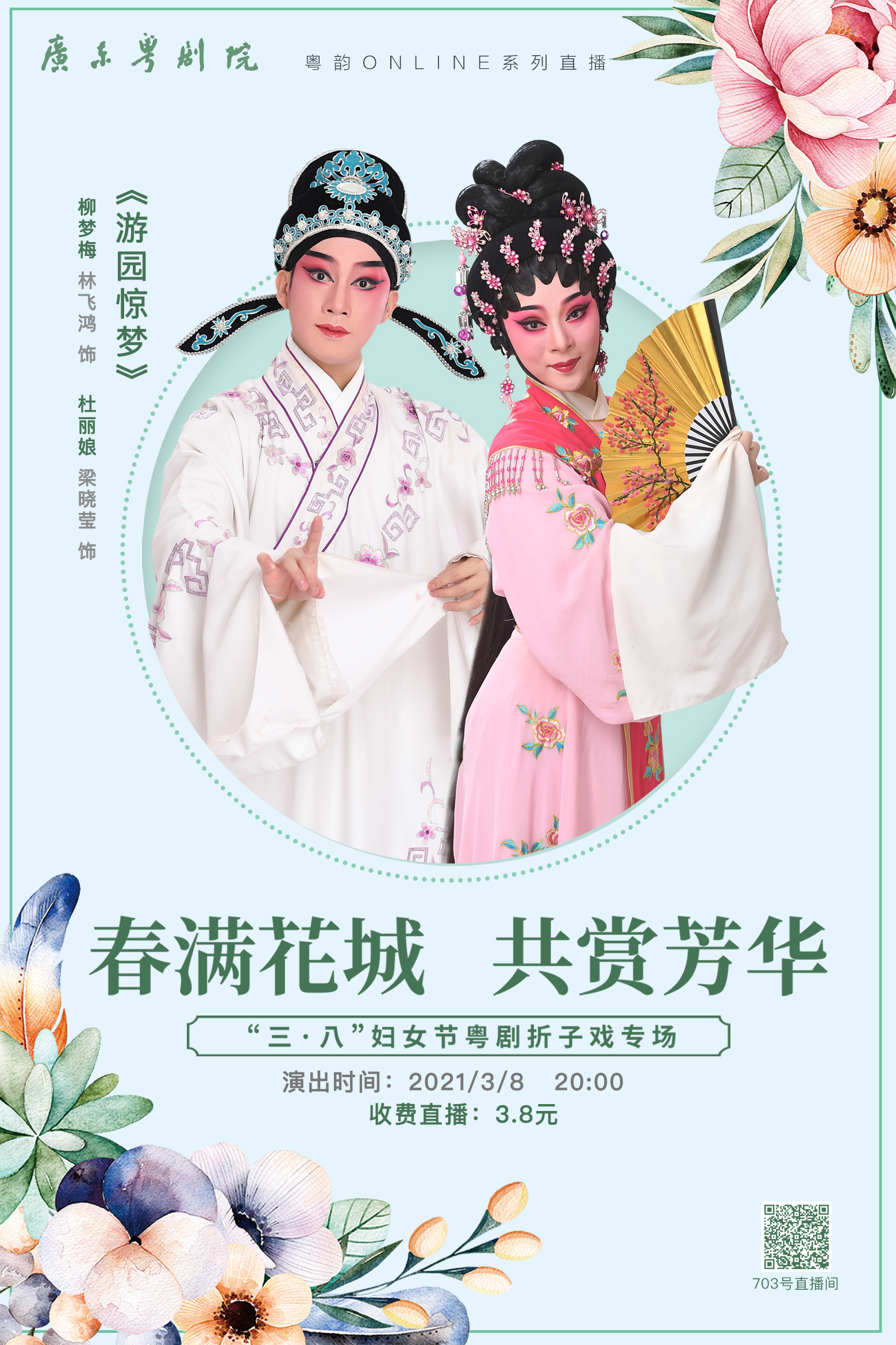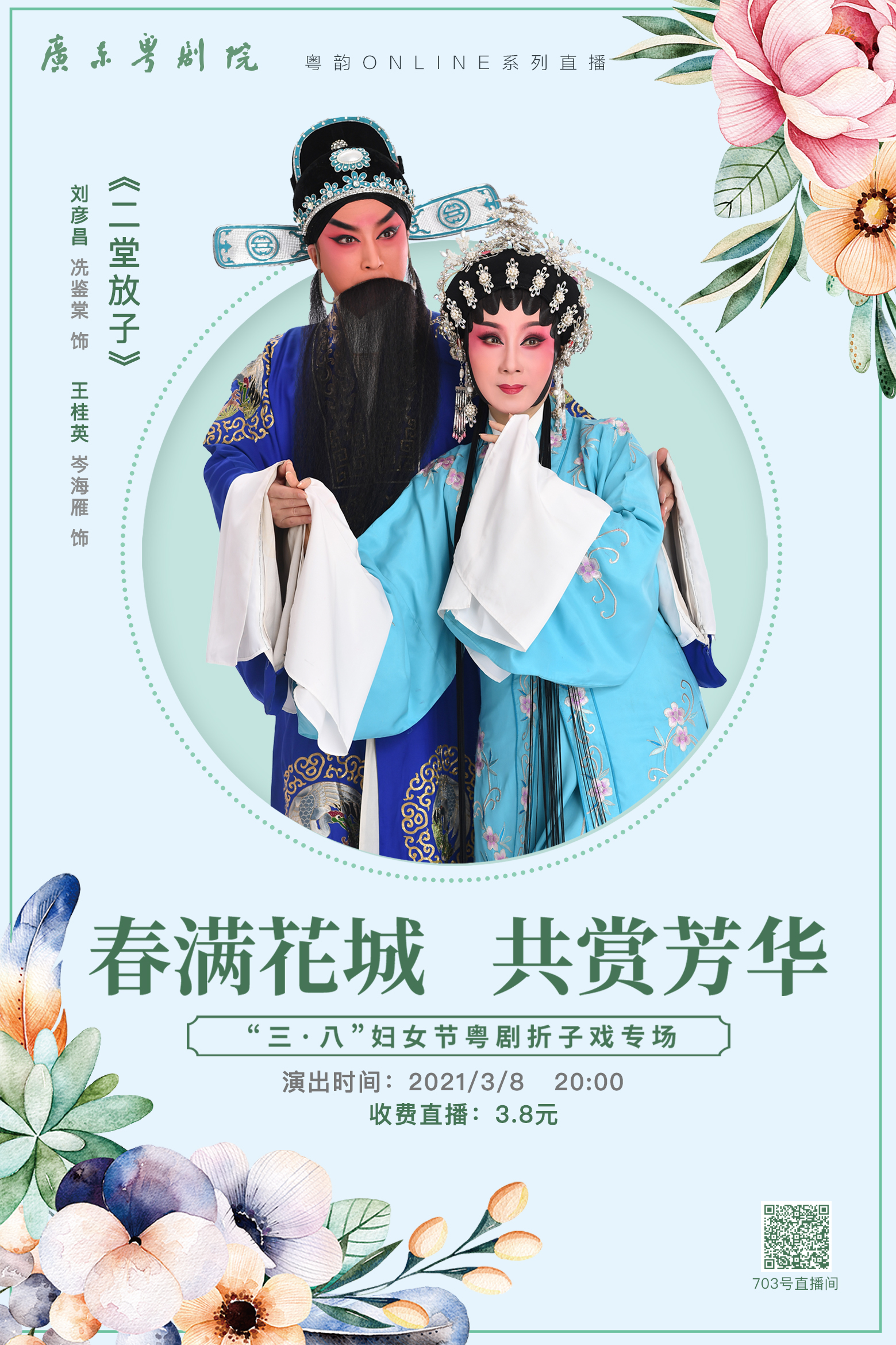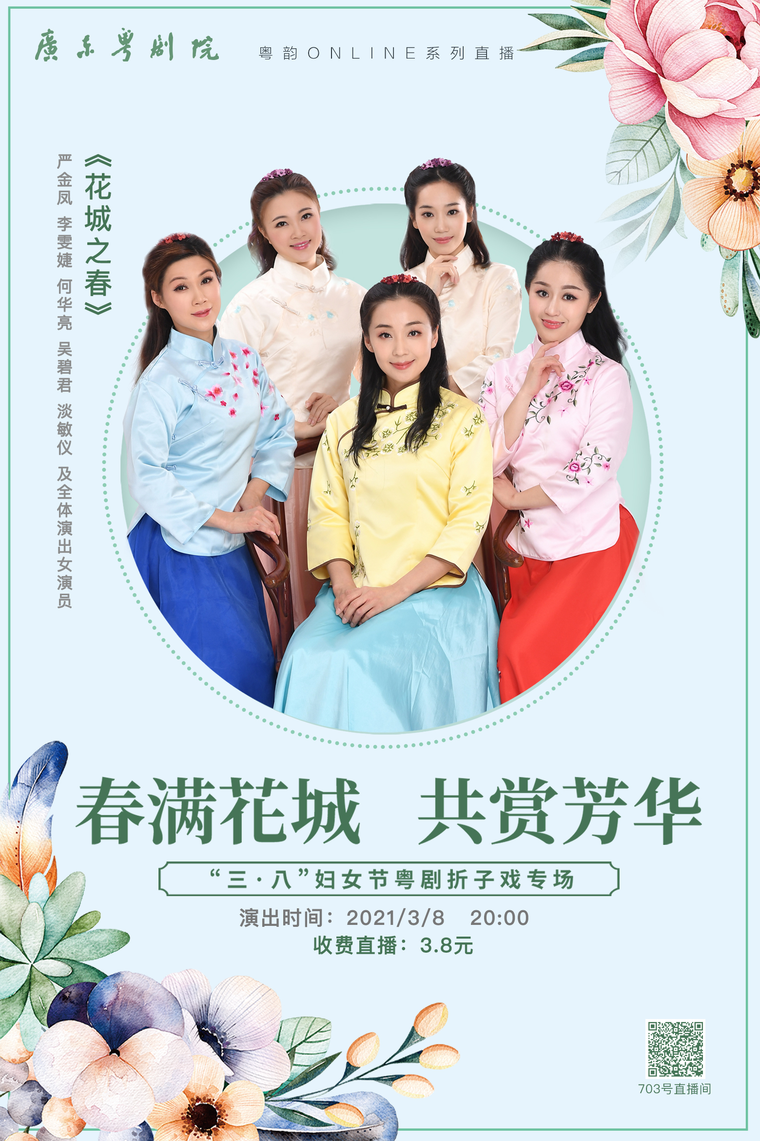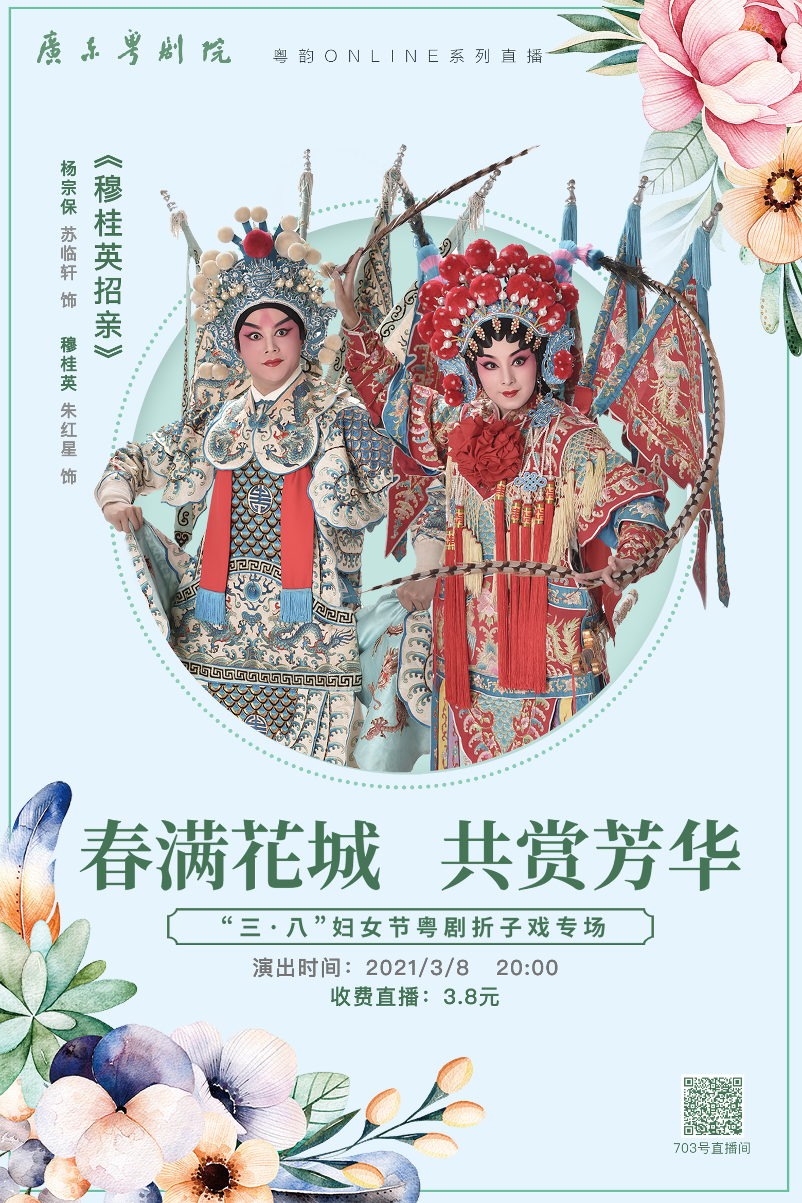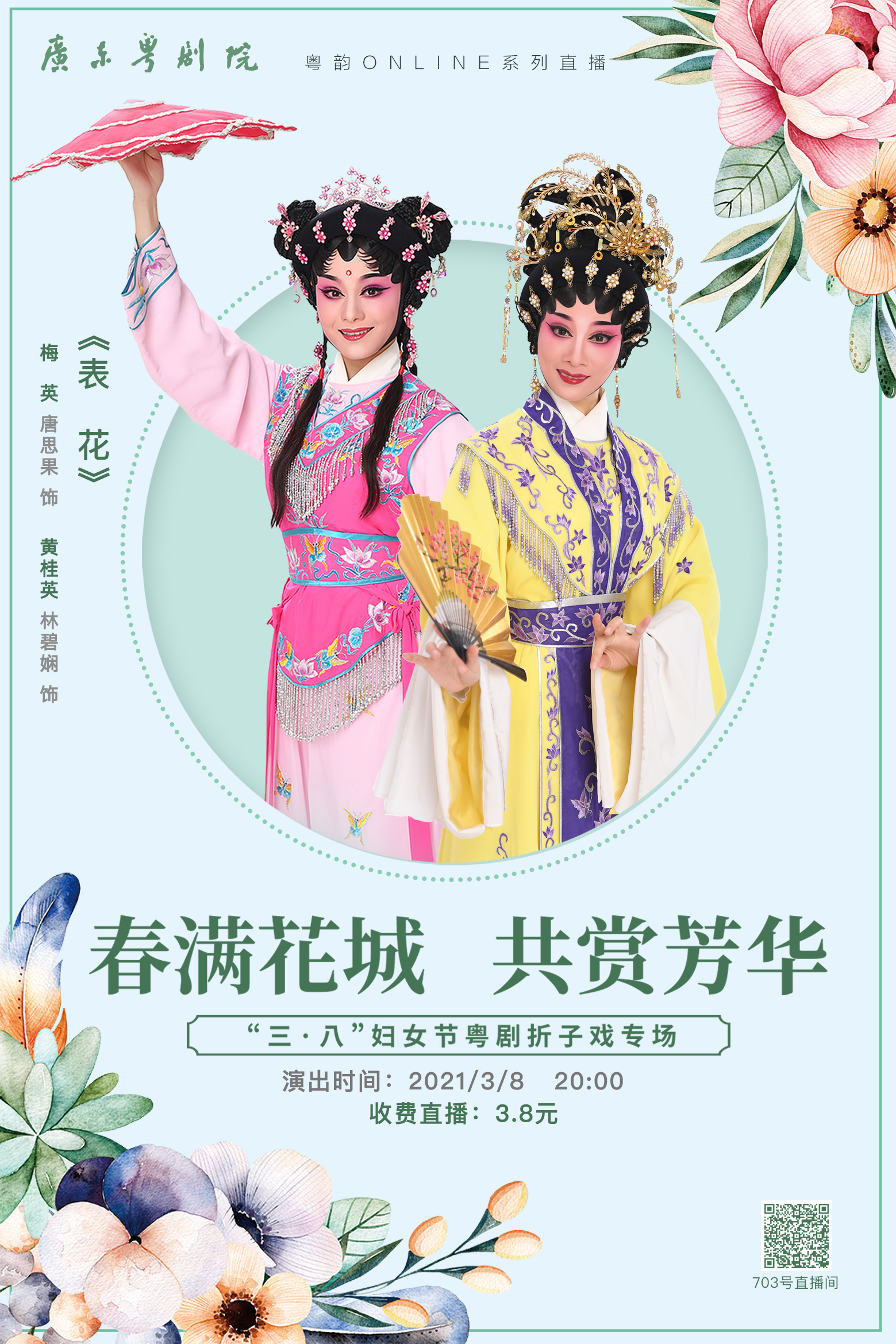 春满花城、共赏芳华。记者获悉,3月8日20:00,广东粤剧院将诚意推出粤韵ONLINE“三·八”妇女节粤剧折子戏专场。这是广东粤剧院首次收费直播演出,为庆祝三·八妇女节特别定价3.8元,专场全程将通过广东粤剧院微信公众号“703号直播间”独家直播。