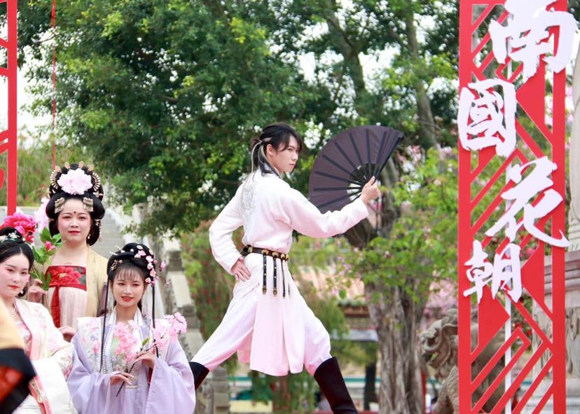 钟鼓乐声响起,主祭带着“花使”缓缓入场,献礼、读祝、奠酒、献花……近日,一场别开生面的祭拜“花神”活动展现在游客眼前。