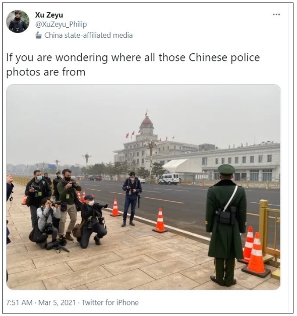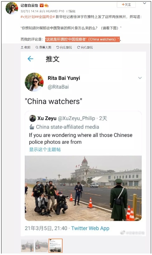 对于外媒这种夹带“私货”的现象,近日,新华社记者徐泽宇在推特上发图文进行“科普”,“如果你想知道外媒那些中国武警的照片是怎么来的……”↓↓↓