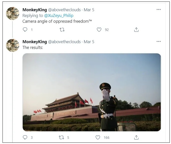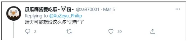 徐泽宇的推特引来不少人的赞同,一条高赞的评论表示,这些记者“先找一个‘压迫自由’的角度,然后,效果不错。”