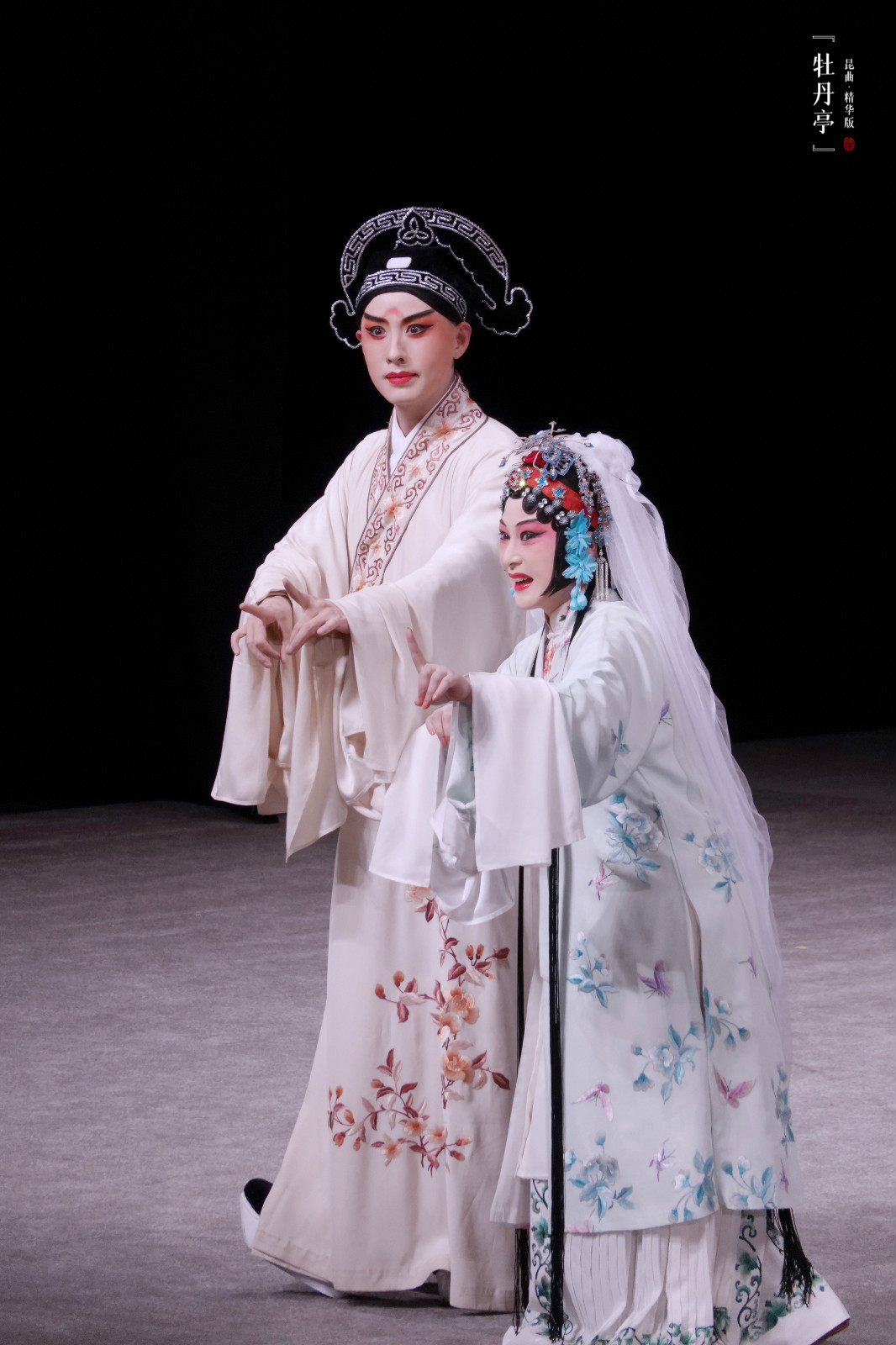 精华版《牡丹亭》采取“一桌二椅”的传统戏曲舞美,无论是“姹紫嫣红”的花园,抑或是“生亦可以死,死亦可以生”的情之所至,皆由演员们精湛的表演为观众一一展现。