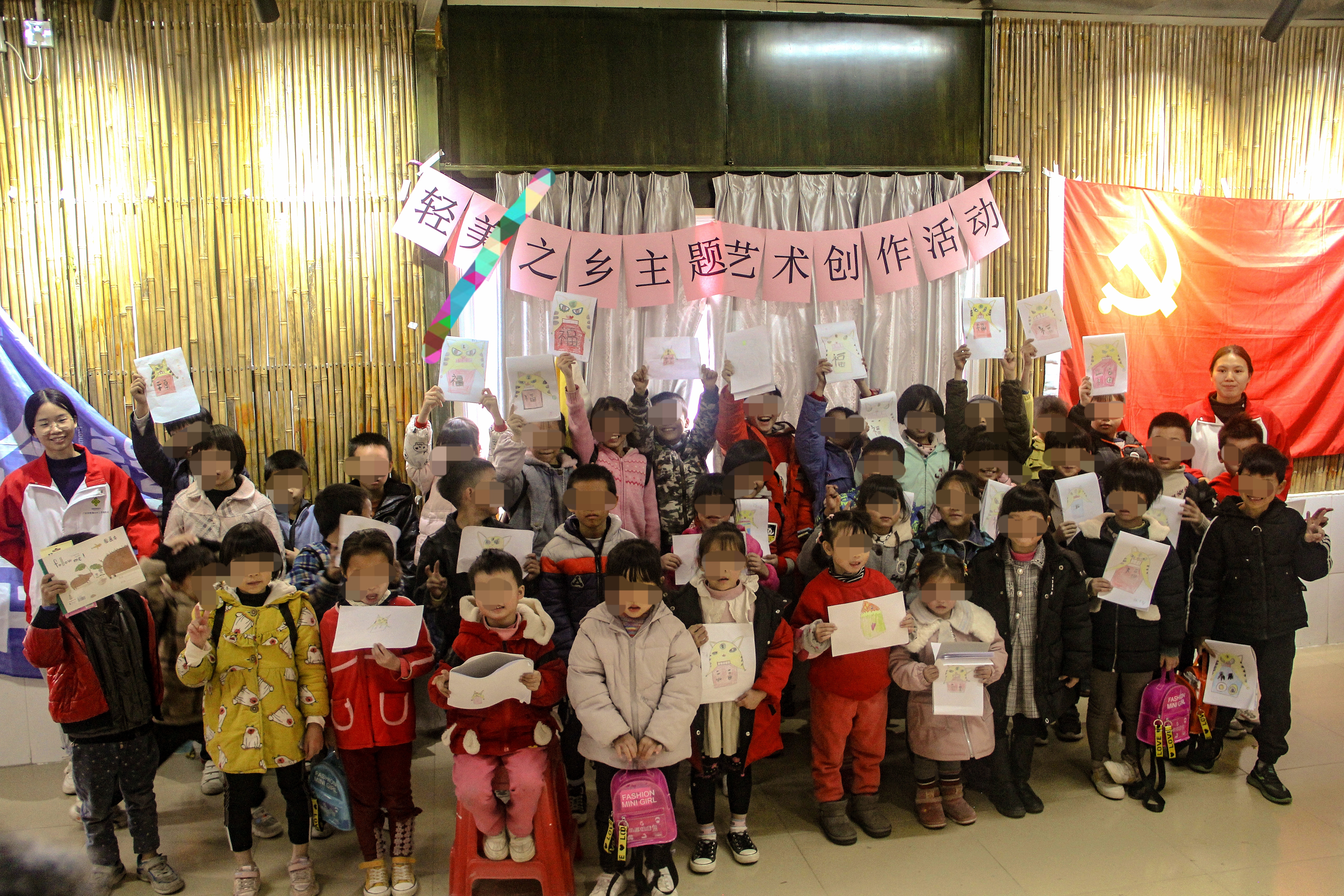 村中的困境儿童,大部分与老人一起生活,就近读书,“学校的艺术课程并不丰富,很难看到孩子像在志愿者的课堂里这么开心和放得开”,老人自身文化水平不高,无法正确地引导孩子。社区健康包(艺术版)选择了在此地试点,对接上了社工机构,希望为当地近百名乡村儿童带去艺术创作课堂。
