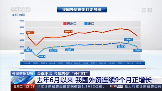 不过今年情况有些不同,海关总署日前发布的数据显示,今年前2个月,我国货物贸易进出口实现“开门红”,其中,出口表现尤为强劲。