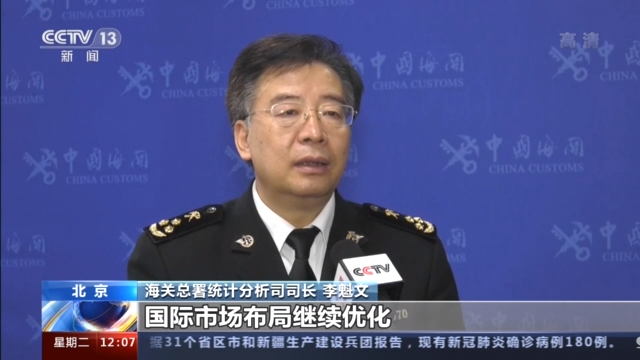 海关总署统计分析司司长 李魁文:我国不断扩大对外开放,国际市场布局继续优化,特别是与“一带一路”沿线国家的经贸合作不断深化,拓展了我国外贸发展的空间,对我国外贸持续向好起到重要支撑作用。