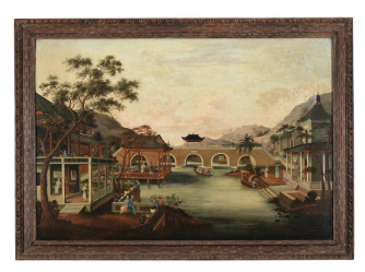 18世纪 荔湾风景图布面广东油画 127cm×90cm(连框);110cm×65cm(画心)