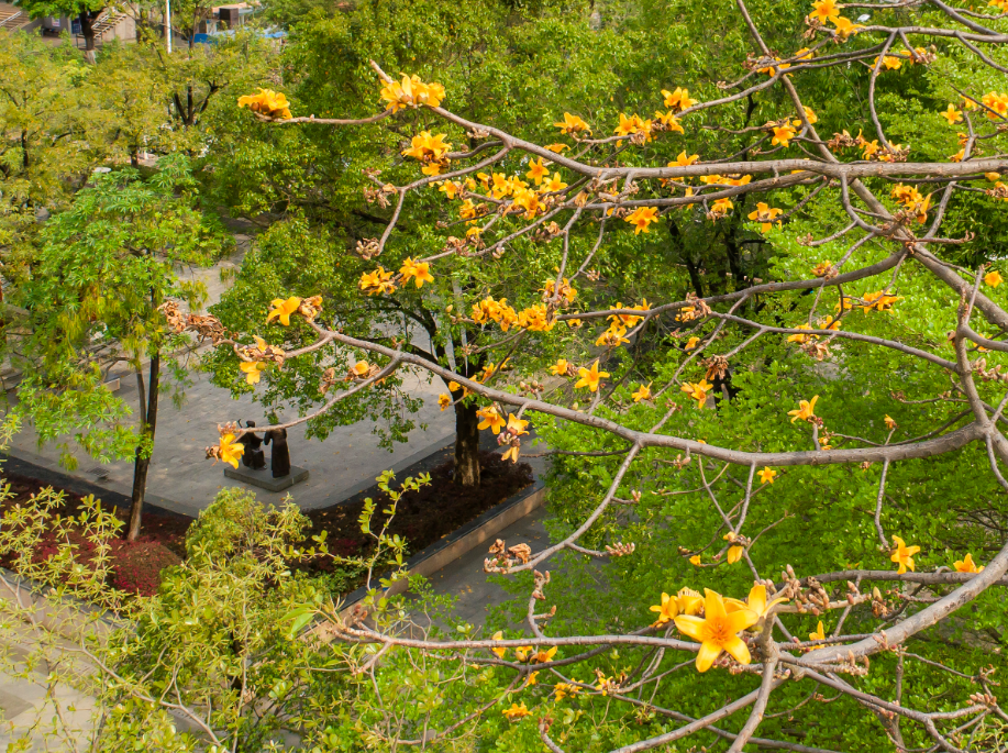 木棉树干高大、挺直,花色红艳,开花景观大气、震撼,是广州春季无可替代的一道美丽风景线,也是广州打造国际“花城”不可或缺的部分。