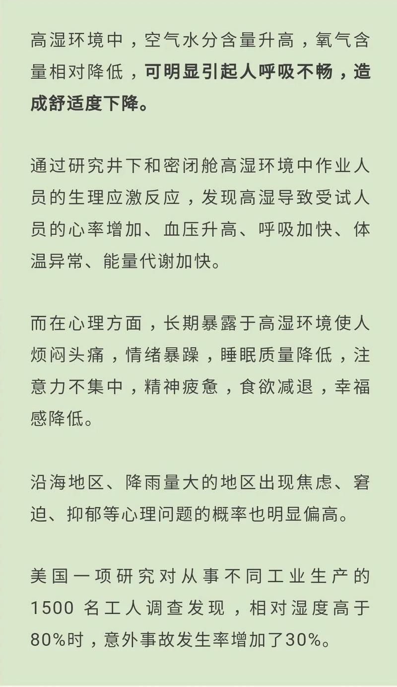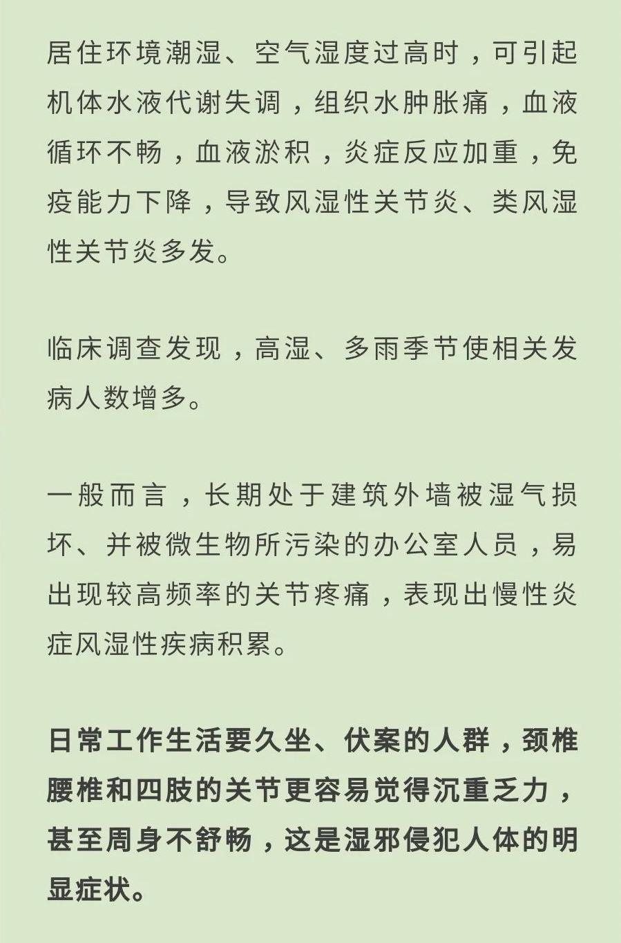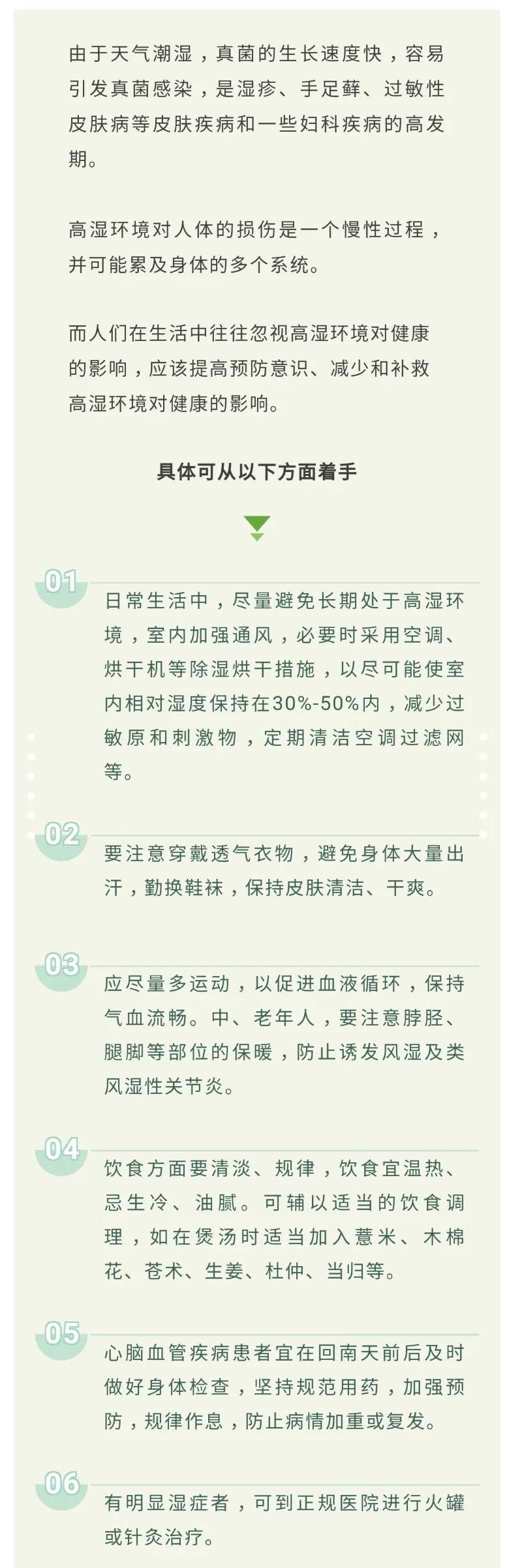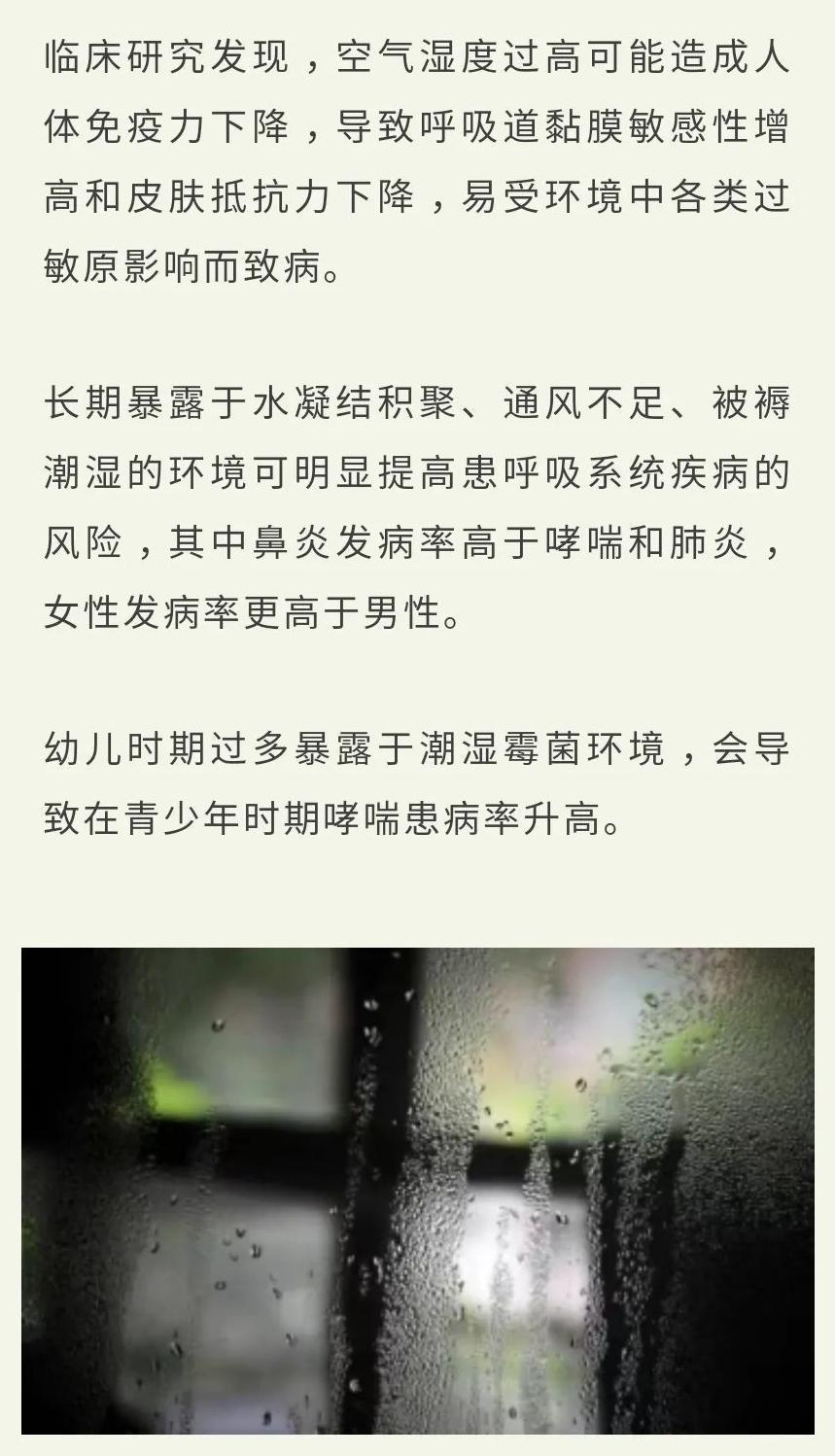 而对高湿环境认识不足、防治不当,会潜在影响人类健康水平,可能诱发或加重上述疾病。