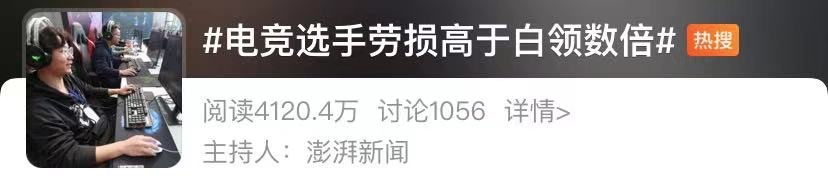 3月9日,话题#电竞选手劳损高于白领数倍#也上了热搜。