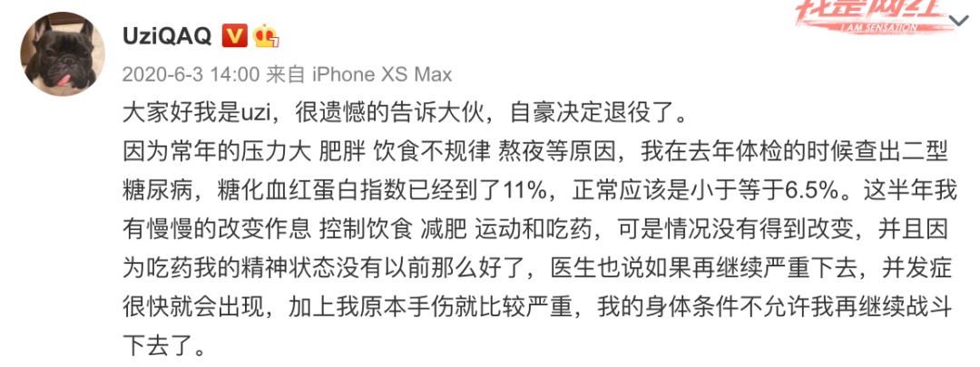 就近两个赛季来看,因为身体状况出问题选择退役和退赛的选手也有不少。春节前,FPX电竞选手Tian在微博上发布声明称,因压力导致身体不适,决定暂离赛场。英雄联盟知名选手Uzi就曾因为身体原因多次缺席比赛,去年更是因伤遗憾退役。而在年前,S9世界赛冠军打野Tian也因为身体不适而暂离赛。