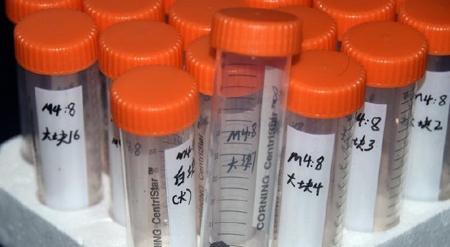 3月10日,研究团队在北京的实验室里,展示垣曲北白鹅墓地出土、周代女性贵族用美容化妆品遗存样品。中新社记者 孙自法 摄